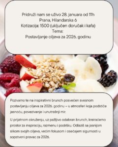 Pozivamo te na inspirativni Networking Meetup Business Brunch posvećen svesnom postavljanju ciljeva za 2026. godinu – u atmosferi koja podstiče jasnoću i povezivanje.